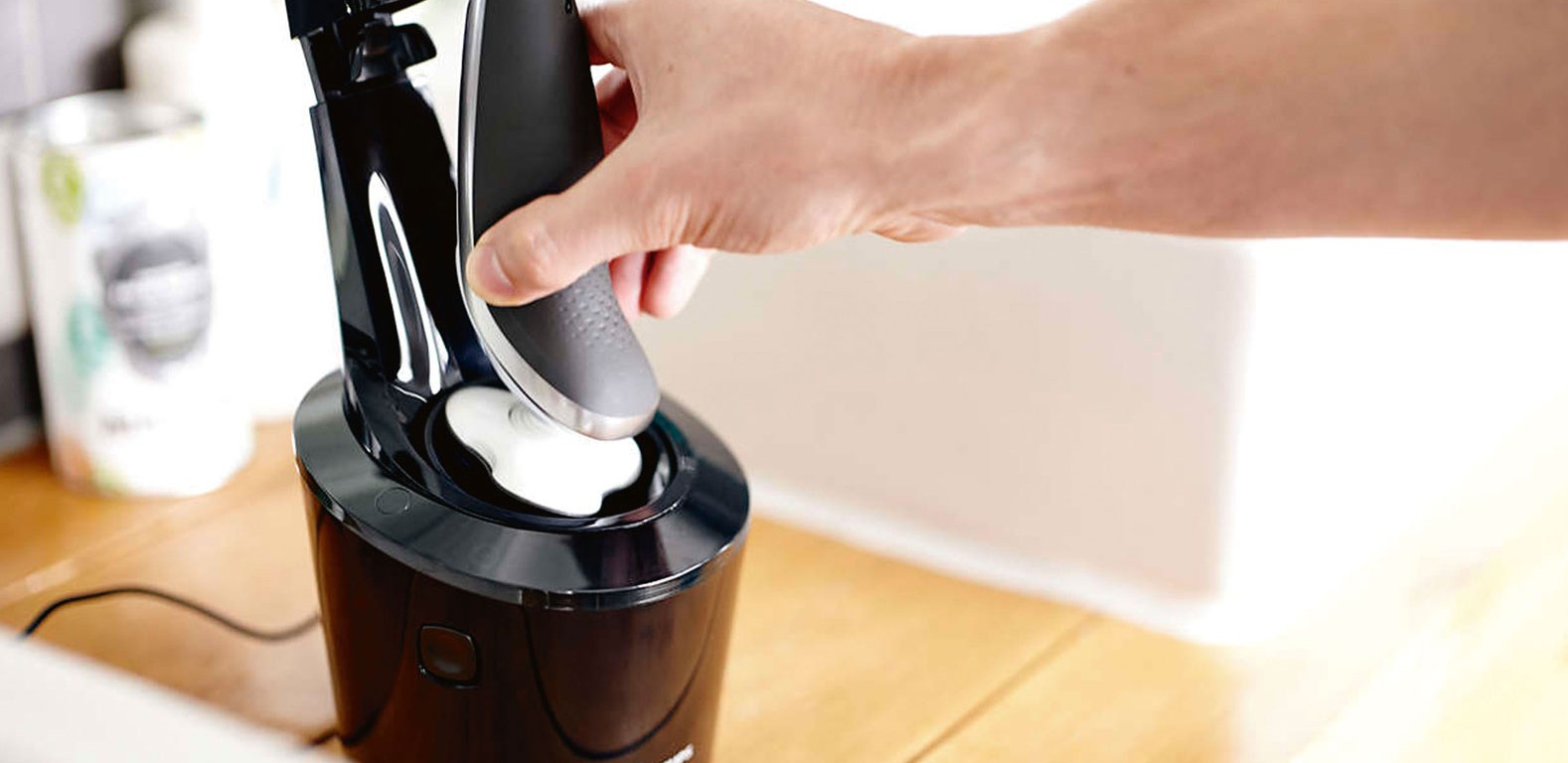 The Philips series 7000 wet & dry shaver unboxed – note the smartclean station that charges and lubricates your shaver at the touch of a button.