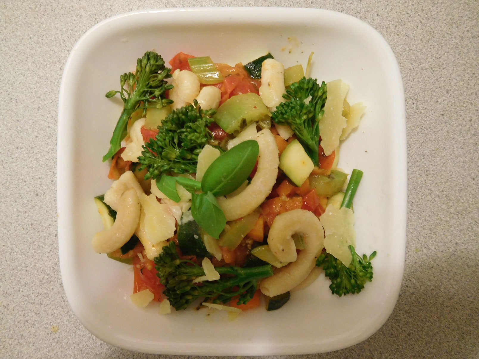 After cooking the penne, I complemented it with a homemade primavera sauce consisting of tomatoes, celery, carrots, zucchini and broccolini – with some shaved parmesan cheese placed on the top for good measure.