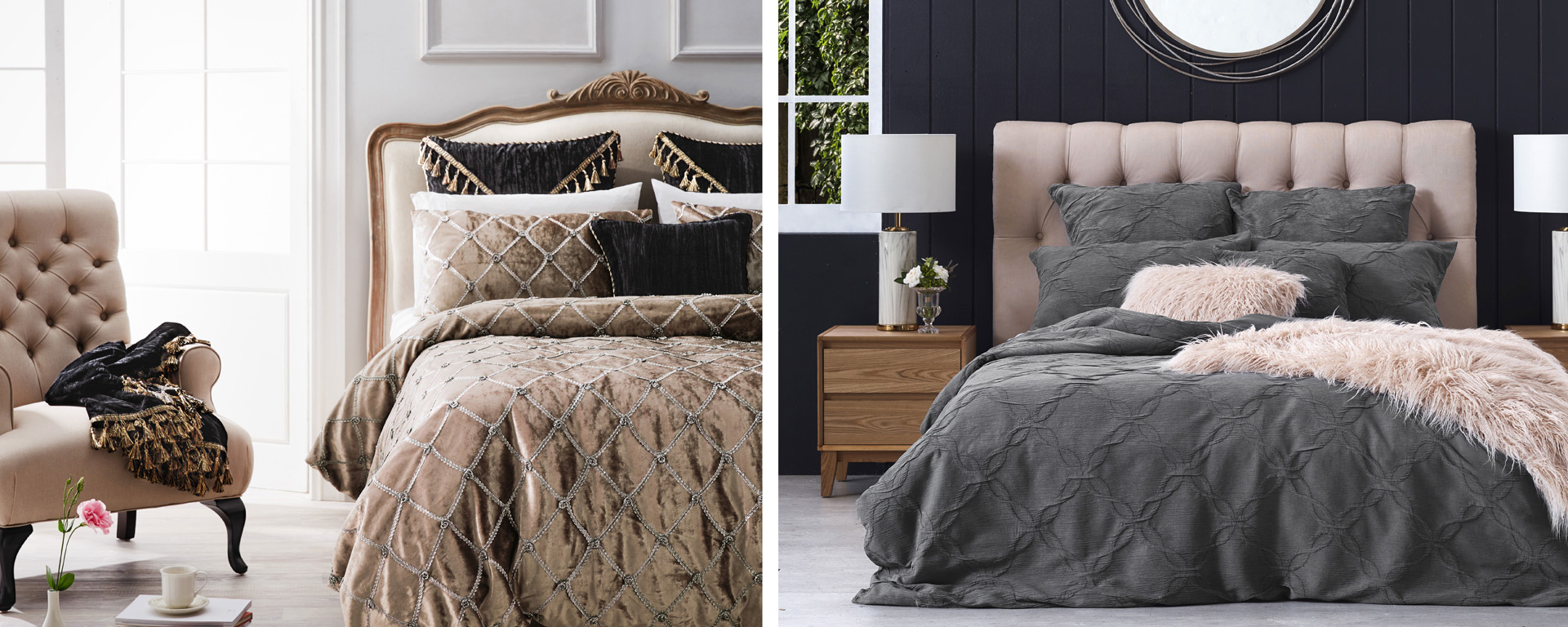 Velvet also works great as fabric for bed linen. Velvet quilt cover sets are so soft and so warm you’ll want to cocoon in bed for days! Look for bed linen that has an eye-catching textured design that complements your bedroom furniture. Subtle tones of pinks and greys work great if you want to keep a neutral colour palette. Taking a minimal approach with neutral colours can also make accessorising a breeze.