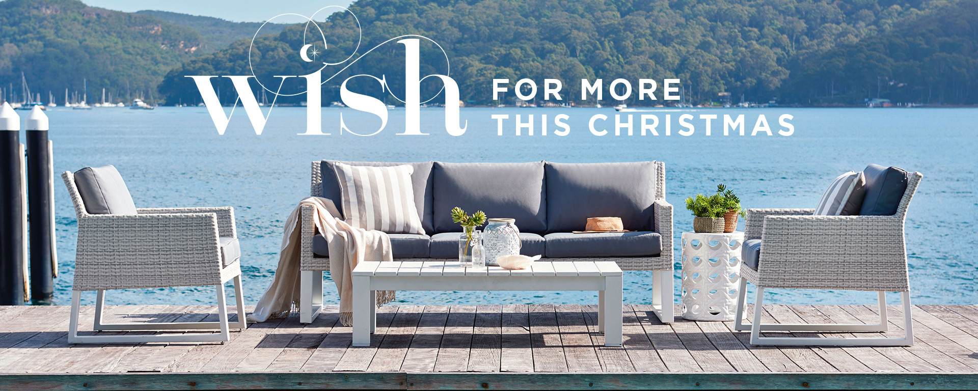 Don’t have the luxury of a huge backyard in which to throw your Christmas party? Introducing the ‘Mours’ Outdoor Setting, the ideal solution to your small space dilemma.