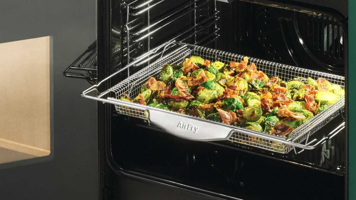 3. Place sprouts, pancetta and garlic in the air fryer basket. Cook for 15–18 minutes, shaking halfway, until sprouts are golden and pancetta is crisp.