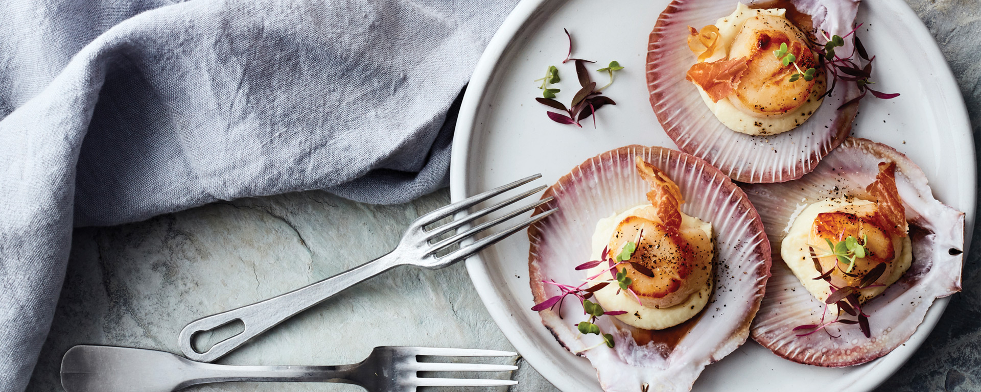 This Christmas, why not give scallops the place of pride at your dinner table? The delicate flavour of this succulent seafood is perfectly balanced by a buttery cauliflower puree. Served in their eye-catching shells, these beauties will add a wow factor to your menu!