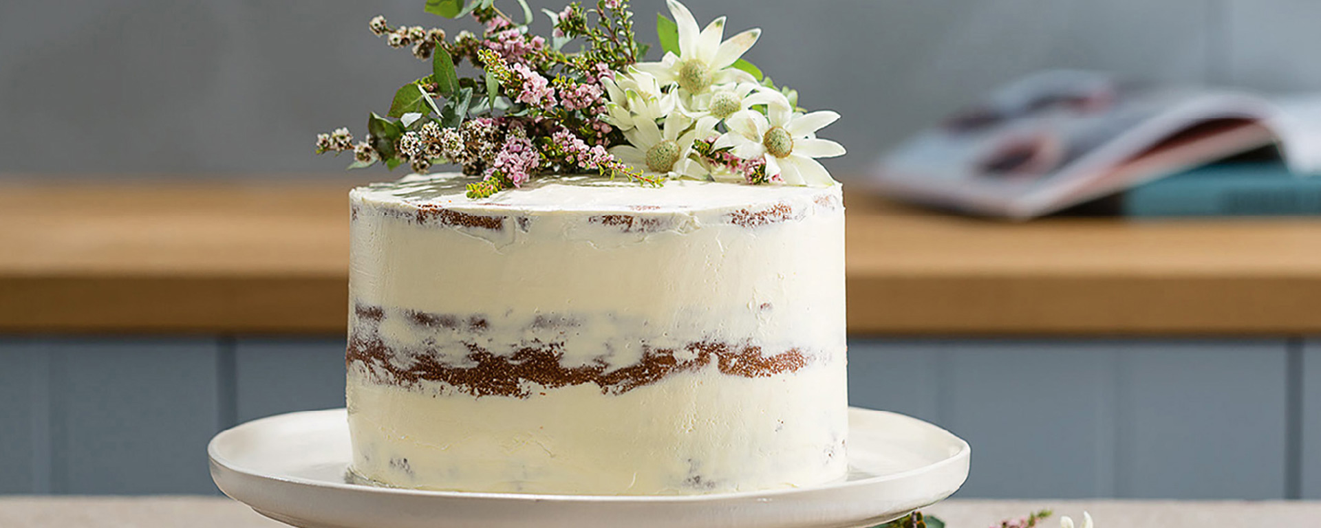 Think outside the box this Mother’s Day and instead of giving mum a bunch of flowers, why not arrange a gorgeous bouquet of native blooms on top of a homemade cake? Currently trending on social media, naked cakes decorated with breathtaking florals is all the rage and this recipe makes it easy to replicate the effect at home.