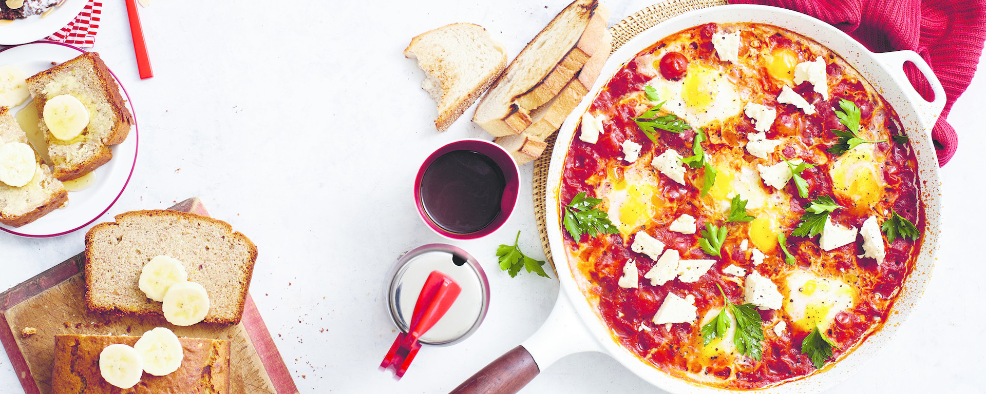 Looking for a new way to serve breakfast eggs? Then you have to try this scrumptious shakshuka recipe – flavoured with garlic, cumin, paprika and chilli, and topped with fresh parsley and crumbly feta. Be sure to toast extra sough dough to mop up the rich tomato sauce!