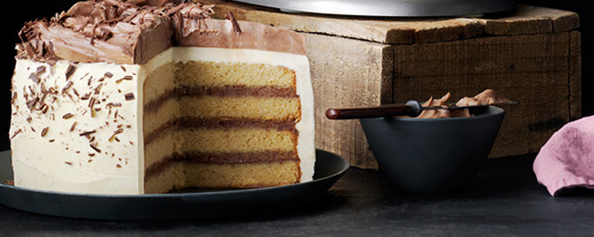 Made with pure maple syrup, rich brown sugar and real vanilla extract, this celebration cake recipe will become a fast favourite for birthdays, anniversaries and all other special occasions. Pair it with layers of hazelnut filling, cover it with lashings of classic vanilla bean buttercream and crown it with a hazelnut and mascaporne topping to claim your title as the queen or king of the kitchen!