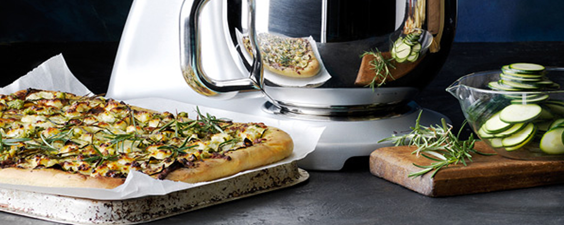 This pizza is layered with fresh and flavoursome ingredients, including fragrant basil pesto, thinly sliced zucchini, stretchy mozzarella and crumby ricotta. And once you’ve seen how easy it is to make the dough using the dough hook attachment on the Smeg 50s Style Stand Mixer from Harvey Norman, you won’t ever go back to store bought pizza bases ever again!