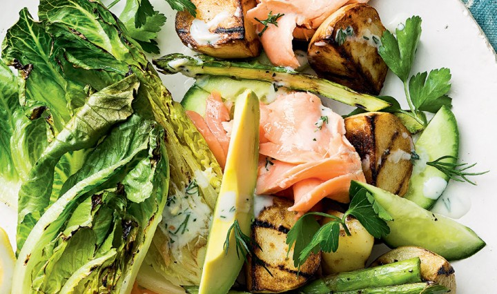 Lemon-Steamed Salmon With Grilled Cos Salad