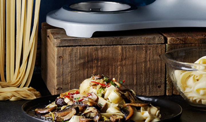 Discover the simple yet utterly satisfying joy of homemade pasta. As well as preparing this delicious fettucine with a mouthwatering medley of mushrooms, you’ll be whipping up a variety of pasta dishes every weekend with the Smeg 50s Style Stand …