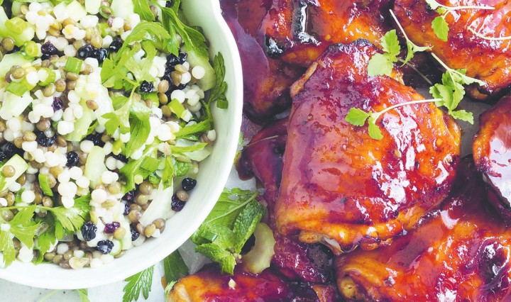 Pomegranate-Glazed Chicken with Lentil Herb Salad