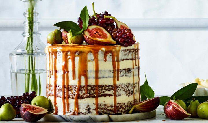 Naked Carrot, Chocolate and Walnut Cake with Caramel Sauce